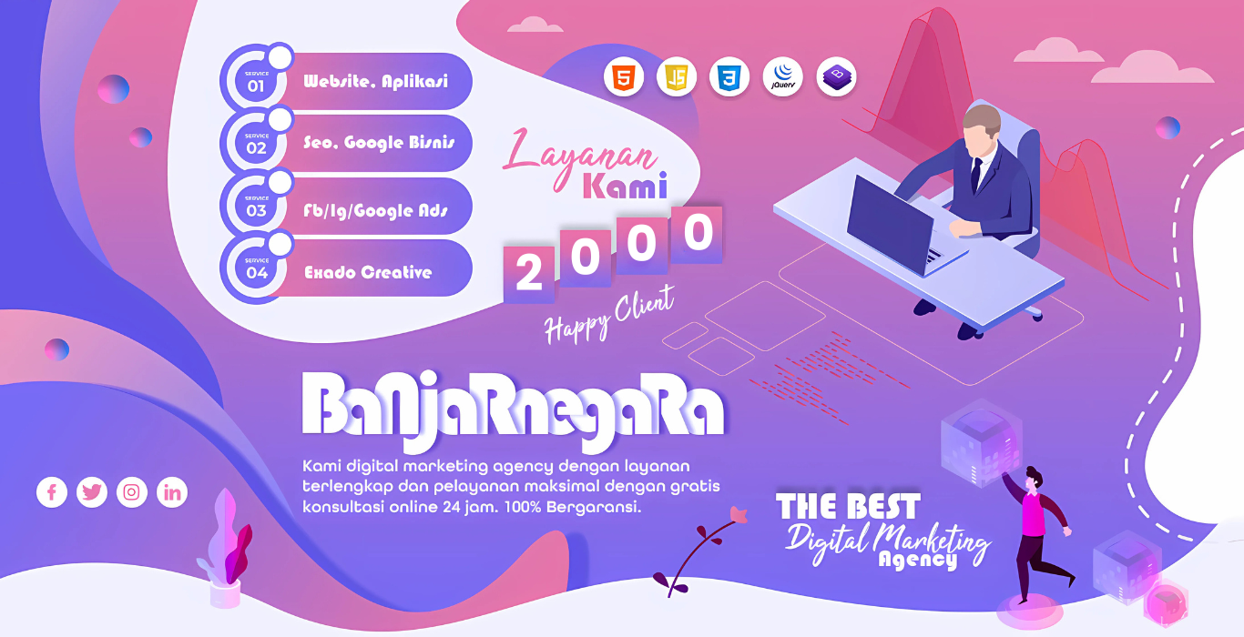 Jasa Website Banjarnegara merupakan perusahaan jasa website profesional yang sudah banyak dipercaya oleh berbagai macam jenis usaha, untuk membantu memasarkan produk maupun jasa, untuk membantu marketing digital agency. Jaminan kedisiplinan, kualitas, jujur, adalah target utama kami.